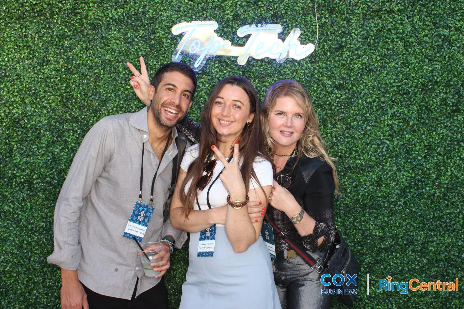 YTILI fellows Lorena Billi and Constantinos Samuel with U.S. host Cheryl K. Goodman at a San Diego technology event, highlighting global collaboration in AI and entrepreneurship. Image Source: Lorena Billi