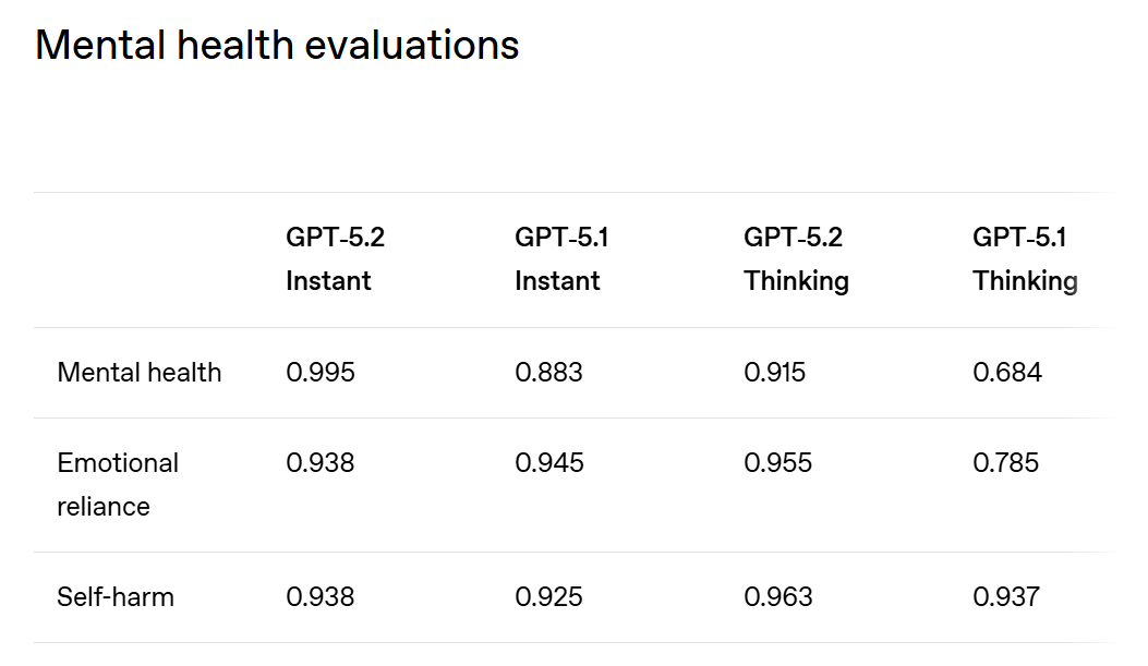 OpenAI says GPT-5.2 builds on the company’s safe completion research introduced with GPT-5, which is designed to help models provide useful responses while remaining within established safety boundaries. With this release, OpenAI focused on improving how the models respond in sensitive situations, particularly conversations that involve mental health distress, self-harm risk, or signs of emotional reliance on the model.