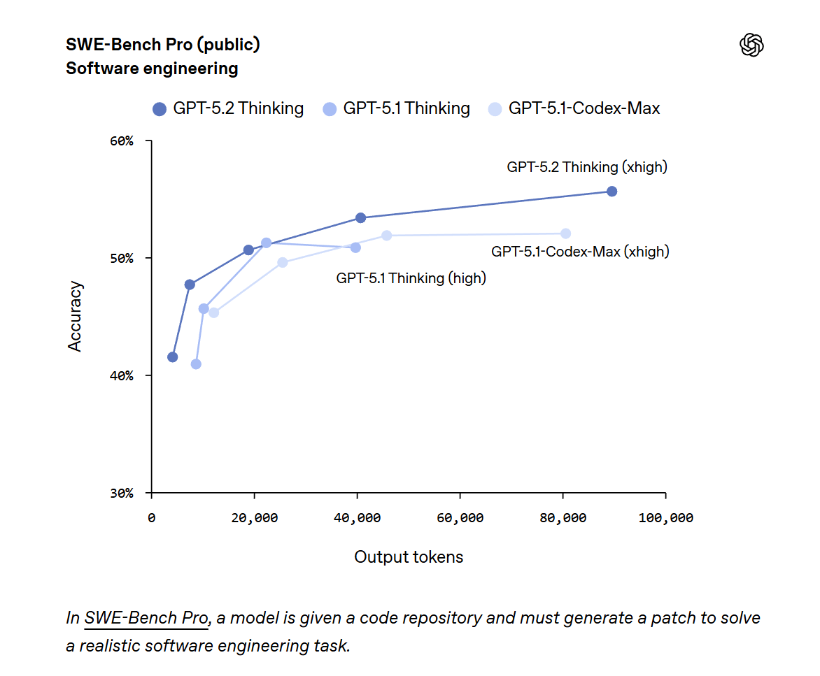 While GPT-5.2 is priced higher per token than GPT-5.1 in the API, OpenAI says the model’s greater token efficiency often reduces the overall cost of achieving a given level of output quality. The company explained that GPT-5.2’s higher per-token pricing reflects its increased capabilities, while remaining priced below other frontier models so developers can continue using it extensively in production and day-to-day applications. ChatGPT subscription pricing remains unchanged.