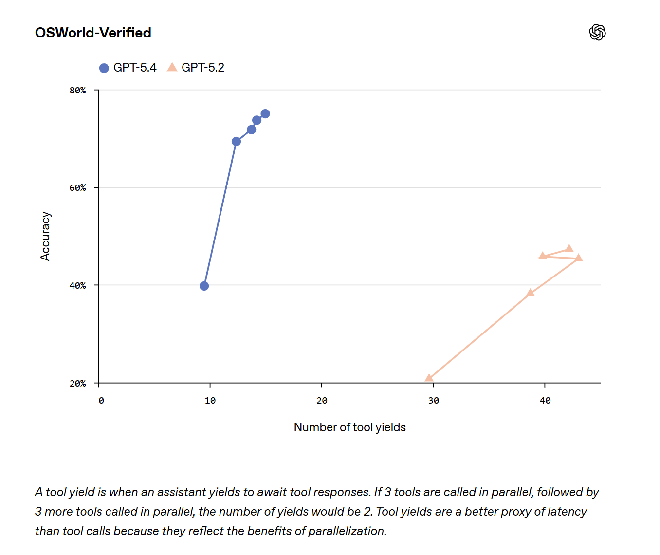 A: According to OpenAI, GPT-5.4 improves on GPT-5.2 in benchmark performance, factual reliability, computer use, web browsing, and tool-based task completion. OpenAI also says the model is more token-efficient, which can reduce cost and latency on longer or more complex tasks.