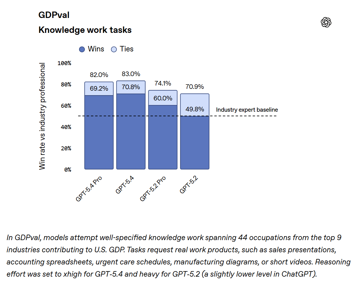 GPT-5.4 benchmark gains in professional knowledge work